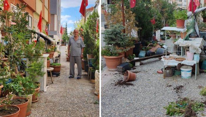 Yaşanan olayla ilgili açıklamalarda bulunan Çetin, savcılığa suç duyurusunda bulunduğunu belirterek Büyükşehir Belediyesi’nin destekleriyle yenilenen bahçeden memnun olduğunu ifade etti. Çetin, “4-5 gün önce bir kedi yavrusu vardı. Kedi yavrusu kaçtı, çocuklar arıyordu ben de 'Kaçmıştır bulamazsınız' dedim. Komşumuz da bana 'Sen karışma, bu bayrağı da diktin buraya zaten' dedi. Ben kendisine bulaşmak istemedim, parka gittim 1-1 buçuk saat oturdum arkadaşlarla. Oradan çıktım geldim, bir başka komşum '' 'Ağabey, her yerin dağıldı, bir tane sağlam çiçek kalmamış' dedi. Bir baktım saksılar kırılmış, bayraklar yerde. Bir vatandaş o anı kameraya almış. Ben de görüntüleri savcılığa vererek suç duyurusunda bulundum. 3 gün moralim çok bozuktu, hiç temizlemedim bile. Buralar pislikten geçilmiyordu, camlar kırık, saksılar kırık. Benim bir suçum da yok, onun evinin önü değil ki kendi evimin önü. Dün akşam üstü de Büyükşehir Belediyesi Park Bahçeler'den 15 kişi gelerek, kuruyan çamlarımı söktüler, o pislikleri topladılar, yenilerini diktiler. Saat 23.00'e kadar burada çalıştılar. Çiçek de getirmişler, diktiler, çay içtik sohbet ettik gittiler. Şimdi huzurluyum. Her yer yine çiçek oldu” ifadelerini kullandı.