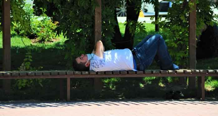 Haziran ayını normalin üzerinde yağışlarla geçiren Eskişehir’de hava sıcaklıkları son günlerde önemli ölçüde arttı. Öğle saatlerinde sıcaklığın 30 derecenin üzerinde seyretmesiyle birlikte vatandaşlar güneşin etkisini hissetmeye başladı. Sıcak havanın tesiriyle parklarda ve yeşil alanlarda buldukları gölgeliklere oturan vatandaşlar, serinlemeye çalıştı. Öte yandan bir vatandaş ise bulduğu gölgeliğin tadını uzanarak çıkardı. Parkın oturma yerine uzanan vatandaş sıcak havada bulduğu gölgenin keyfini çıkardı.