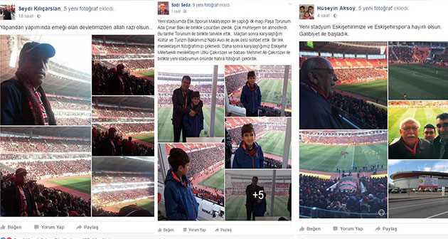 Eskişehir Gençlik Hizmetleri ve Spor İl Müdürü Hüseyin Aksoy'un yaptığı paylaşımla başlayan yeni stadın sevinci, Kültür ve Turizm Bakanı Nabi Avcı'nın paylaşımla bu güzel anların duyurmasını sağlamış oldu. Aksoy, maç öncesi ilk paylaşımında; ''Gece saat 03.30 ve ekip olarak Yeni stadyumu sabaha hazırlamak için ayaktayız'' ve son paylaşımında; ''Yeni stadyum Eskişehir'imize ve Eskişehirspor'a hayırlı olsun. Galibiyet ile başladık'' diye Eskişehir'lilerin sevincine ortak oldu. Seyitgazi Belediye Başkanı Hasan Kalın ise;''Bakanımızla takımımızla maça hazırız. Haydi es es Başarılar''diyerek duyurdu. Eskişehir tanınmış gazetecilerinden Sadi Seda ise bu mutluluğa torunu ile ortak olarak sosyal medya hesabından;''Yeni stadyumda Esk.sporun Malatyaspor ile yaptığı ilk maçı paşa torunum Ada Çınar Baki ile birlikte Loca'dan izledik. Çok muhteşem bir atmosferdi. Bu tarihe torunum ile birlikte tanıklık ettik''diye duyurdu.