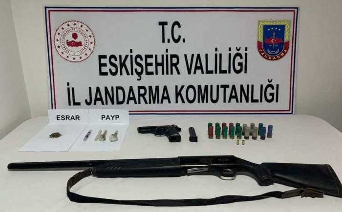 Eskişehir İl jandarma Komutanlığı'na bağlı ekipler tarafından Odunpazarı, Tepebaşı ve Sivrihisar ilçelerinde 8 şüpheli şahsın ikametgahlarında uyuşturucu madde bulundurduğu ve kullandıkları öğrenildi. Bunun üzere ekiplerce 9-10 Eylül 2024 tarihinde şüpheli şahısların evlerinde arama yapıldı. Gerçekleştirilen aramada 10,9 gram metamfetamin, 10 gram bonzai, 10 gram esrar, 1,9 gram amfetamin, 1 adet uyuşturucu hap, 5 adet uyuşturucu kullanma aparatı, 1 adet ruhsatsız tabanca, 2 adet kurusıkı tabanca ve 1 adet ruhsatsız av tüfeği ele geçirildi. Şüpheli şahıslar hakkında ise 'Uyuşturucu Madde Bulundurmak ve Kullanmak (TCK191) ve 6136 Sayılı Kanun'a Muhalefet' suçlarından işlem yapıldı.