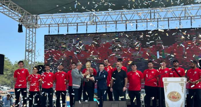 Konuşmaların ardından Mihalıççık Erkek Hentbol Takımı 1. Lig’de kazandığı kupayı Başkan Haydar Çorum’a takdim etti.