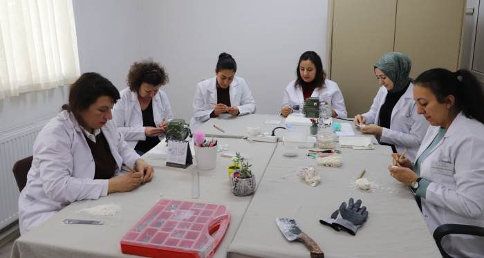 Eskişehir Olgunlaşma Enstitüsü Lületaşı Usta Öğreticisi Şeyda Caran, üretim sürecinin her aşamasında kadın emeğinin ön planda olduğunu vurguladı. Lületaşından akla gelebilecek pek çok ürünün yapıldığını belirten Caran, çalışmaların yalnızca tek bir atölyeyle sınırlı kalmadığını ifade etti. Lületaşı üretiminde disiplinler arası bir yaklaşım benimsediklerini söyleyen Caran, dikiş ve cam atölyeleriyle ortak çalışmalar yürüttüklerini kaydetti. Bu iş birlikleri sayesinde lületaşı, farklı malzemelerle harmanlanarak özgün tasarımlara dönüşüyor.