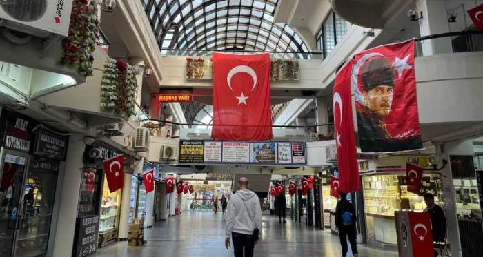 Özel günlerin hepsinde büyük bir özen gösteren Taşbaşı Çarşısı esnafı, bu sefer de Cumhuriyetin kuruluşunun 100’üncü yılında bayraklarını astılar.