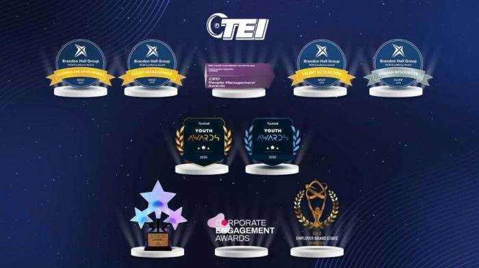 Şirket, Brandon Hall Excellence Awards’ta öğrenme ve gelişim, yetenek yönetimi ve çalışan bağlılığı alanlarında üç altın ve bir gümüş ödül aldı. TEI, “En İyi Eğitim Ekibi”, “En İyi Çalışan Bağlılığı”, “En İyi Yetenek Kazanımı” kategorilerinde altın; “En İyi İş Gücü Planlama ve Yönetimi” kategorisinde ise gümüş ödülün sahibi oldu.