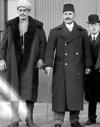 Üresin, paylaşımında “Son günlerde yayınlandı bu fotoğraf… 1909 yılı, ABD… Sağdaki heybetli kişi, ünlü güreşçimiz Kızılcıklı Mahmut Pehlivan’dır. Solda yine ünlü güreşçilerden Maksut Murat” ifadelerine yer verdi.