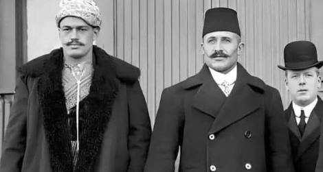 Fotoğrafta sağda heybetli bir şekilde duran Kızılcıklı Mahmut Pehlivan'ın yanında, yine o dönemde ün yapmış bir başka güreşçi olan Maksut Murat yer alıyor.