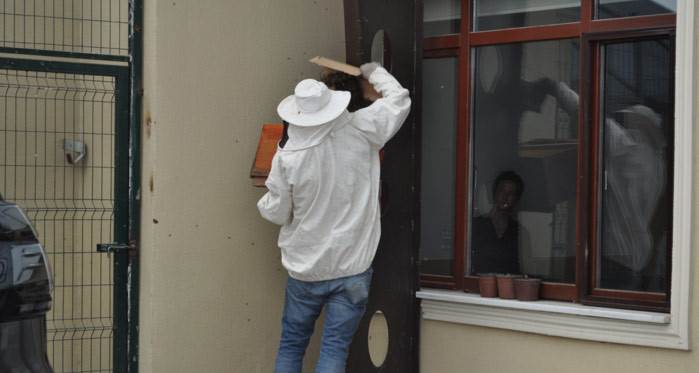 Eskişehir Orman Bölge Müdürlüğü personeli dün akşam saatlerine doğru bahçenin köşesinde büyük bir arı kolonisi oluşmaya başladığını fark etti. Alışılagelmişin dışındaki görüntü karşısında şaşıran personel, ilk olarak arıların sokmaması için diğer personeli ve çocukları kapalı alanlara yönlendirdi. Oğula çıkan kraliçe arının duvara konması sonucunda toplanan koloni, arıcı maskesiyle duruma müdahale eden bir uzman tarafından zarar verilmeden kovana alındı. Arıcılar ise bu durumun değişken hava şartlarından ve şehir içerisindeki bir kovan sahibinin ilgisizliğinden kaynaklanabileceğini belirtti.