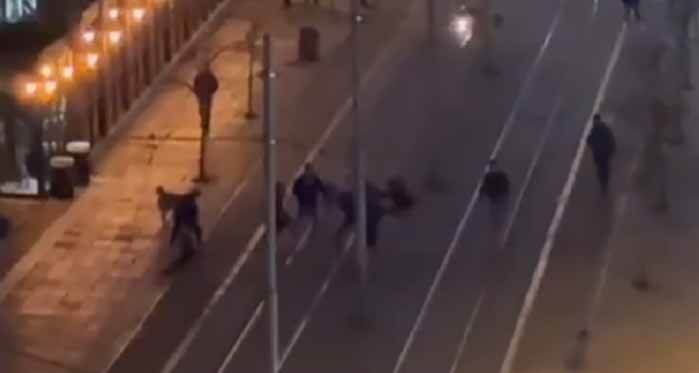 Eskişehir'de kentin işlek bir noktasında çıkan kavgada, iki grubun acımasızca birbirlerine saldırdığı anlar cep telefonu kamerasına yansıdı.