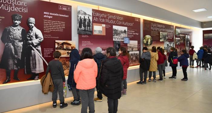 Milli Mücadele’de Eskişehir ve 100. Yılında Eskişehir’in Kurtuluşu sergisi, Eskişehir’in uğradığı işgallerden verilen mücadeleleri Mustafa Kemal Atatürk’ün Eskişehir’e ilişkin tespitlerinden İnönü Savaşları’na kadar pek çok tarihi olayı görsel zenginlikler ile ziyaretçilerine anlatıyor. Eskişehirli vatanseverlerin milli mücadele ile bütünleşmesini aktarıldığı sergi, 1 yıl boyunca ziyaretçilere açık kalacak. 7’den 70’e kent halkı da sergiyi ziyaret ederek Eskişehir tarihine duyduğu merakı gideriyor.