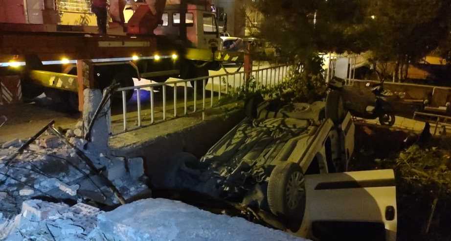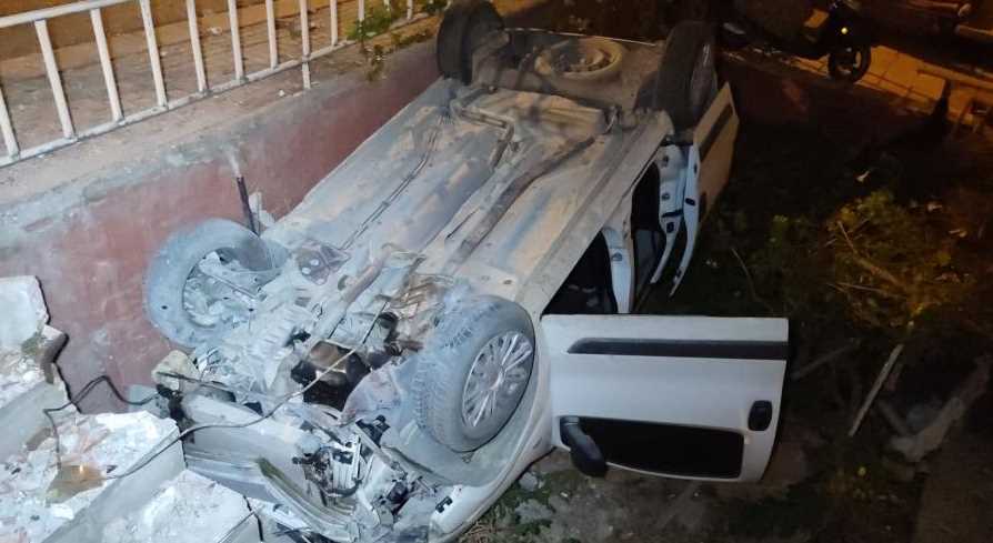 Eskişehir'de gece saatlerinde meydana gelen kazada, alkollü olduğu belirlenen bir sürücü, aracıyla duvara çarptıktan sonra yaklaşık 2 metre yüksekten bir apartmanın bahçesine uçtu