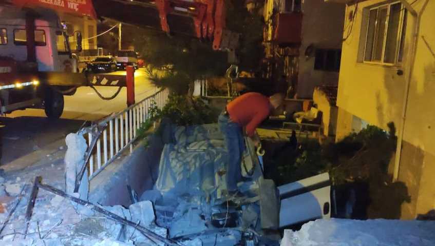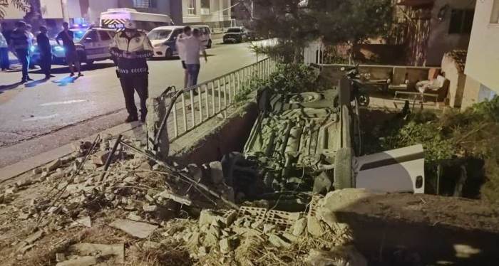Kaza sonucunda hafif ticari araç kullanılamaz hale gelirken, apartmanda ve bahçesinin çevresinde hasar oluştu. Polis ekipleri, kazayla ilgili soruşturma başlattı.