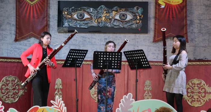 Prof. Hale Basmacıoğlu’nun gönüllü danışman desteği ile düzenlenen etkinlikte bu kez enstrüman olarak “fagot” tanıtıldı. Anadolu Üniversitesi Devlet Konservatuarı öğretim görevlilerinden Prof. Emre Hopa, fagotun bölümleri, sesi ve diğer özelliklerini izleyiciler ile etkileşimli olarak paylaştı. Çizgi film müziklerinden örneklerle eğlenceli ve bir o kadar da eğitici geçen söyleşinin ardından fagot üçlüsü Mine Kapanoğlu, Selin Güngör ve İrem Özkaya da Polonez, Polka ve Türk Marşı’nı çalarak izleyicilere doyumsuz bir müzik ziyafeti yaşattı.