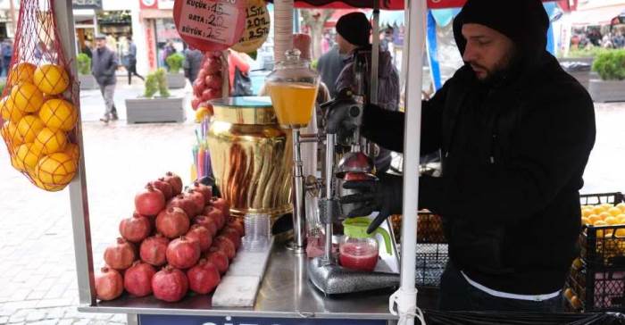 Eskişehir’de soğuyan havaların gelmesiyle birlikte vatandaş bazı hastalıklardan korunmak için çareyi limon, portakal ve nar suyu içmekte buldu.