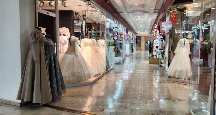 Geçmiş yıllarda yaşanan yoğunluğun yerini sakinliğe bıraktığını dile getiren Dingeç, dönüştürülebilir damatlıklara olan ilgininse arttığı ifade etti. Dingeç, “Esnaf Sarayı'nda düğün sezonu bu sene iyi geçmedi, satışlarımız çok düşüktü. Hem gençlerin düğün yapmamaya başlaması hem de alım gücünün düşmesi, gurbetçinin az gelmesi, vatandaşın AVM'lere yönelmesi bizi çok etkiledi. AVM çalışanları ikinci kalite ürünlerini tam damatlık yani set halinde satıyorlar. Bir de taksit imkanı var. Müşteri portföyümüz de son zamanlarda çok değişti. Eskiden orta sınıf dediğimiz memur grubu gelirken şimdi onlar AVM'leri tercih ediyorlar veyahut da insanlar tamamen kısıtlamaya gittiler alışverişlerinde. Biz daha çok alt gelir grubuna hitap etmeye başladık. Eskiden daha kaliteli damatlıklar, daha kaliteli gelinlikler alınırken şimdi biz bile getiremiyoruz çünkü maliyetler çok yüksek. Şimdi dönüşebilir damatlıklara dönüldü yani damatlık şeklinde alıyorlar daha sonra onun düğmesi yakası değişiyor ve normal hayatta da giyebilecekleri bir takım elbise oluşuyor. Gelinliklerde de bazı dokunuşlarla tekrar kullanılabiliyor. Yani alım gücü düştüğü için kalite de düştü” ifadelerine yer verdi.