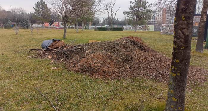 Eskişehir’de İsmet İnönü 2 Caddesi üzerindeki parkta biriken kuru yapraklar ve dallar, yapılan temizlik çalışmasıyla toplandı.