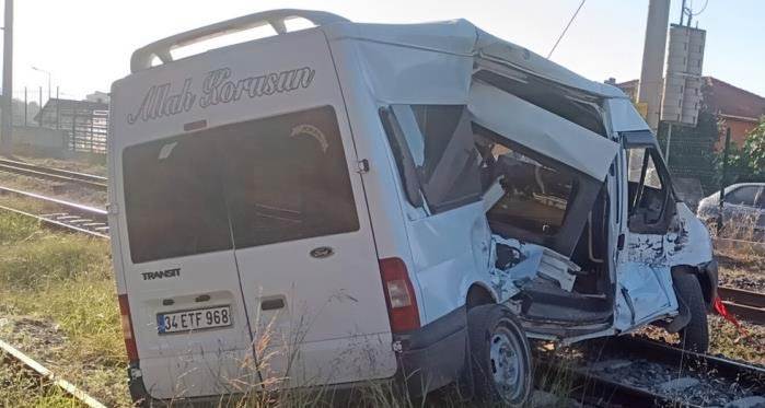 Meydana gelen kazada tren, minibüsü yaklaşık 45 metre sürükledikten sonra durabildi.