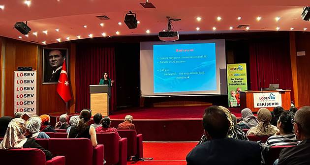 Yılmaz'ın "Meme Kanseri Risk Faktörleri" konulu eğitimi gerçekleştirerek, ailelerin zorlu sürecine destek olduğu kaydedilen açıklamada, "Özellikle doğru bilgi ihtiyacının yoğun ve önemli olduğu tedavi süreci, LÖSEV'in gönüllü uzmanlar eşliğinde sunduğu eğitim destekleri sayesinde ailelerin mücadelesini olumlu etkiliyor. Hasta ve hasta yakınlarının yalnız olmadıklarını bilmeleri, kendilerini geliştirmeleri ile aileler hayata daha sıkı bağlanıyor." ifadeleri kullanıldı.
