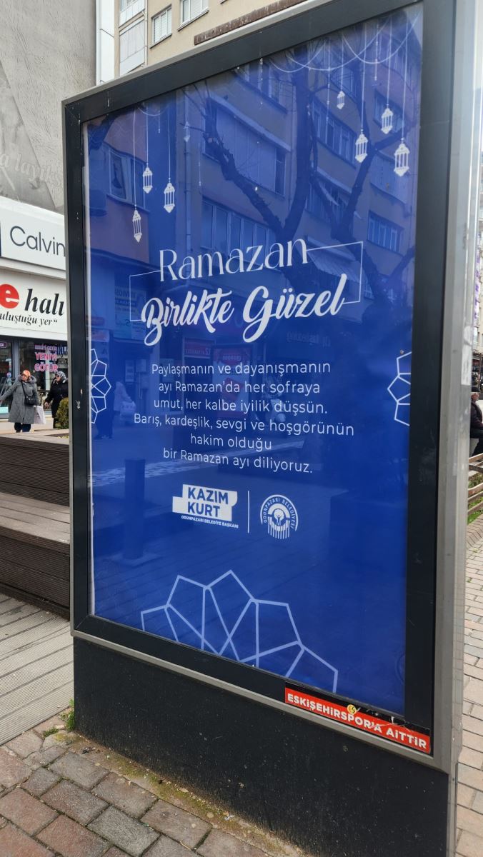 Eskişehir’de Odunpazarı Belediyesi, Ramazan ayı dolayısıyla kent genelindeki reklam panolarına anlamlı bir mesaj yerleştirdi. “Ramazan Birlikte Güzel” başlığıyla hazırlanan afişlerde paylaşma ve dayanışma teması ön plana çıkarıldı.
