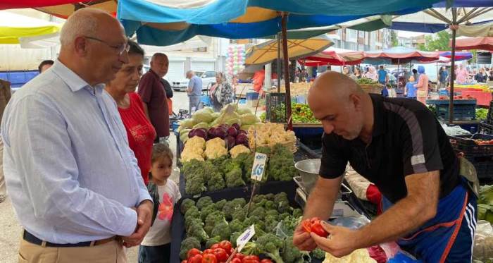 Pazarda esnaf ve vatandaşı dinleyen CHP’li Çakırözerde, “Artık pazarcı etiketlere kilogram yazamıyor! Bamyaya 150 lira yazdığında insanlar alamıyor. O yüzden bir yemeklik, tam yemeklik etiketler çıkmış. Bir yemeklik 1 kişilik için. Tam yemeklik 4 kişi için. O da 335 gram 50 lira. İnsanlar artık 1 kilogram, yarım kilogram diyemediği için yemeklik diyor. Tarlada üretici mağdur, pazarda esnaf mağdur, fiyatlardan tezgâha yaklaşamayan alım gücü düşen vatandaş mağdur. Bu pahalılığın, yoksulluğun, geçim sıkıntısının sorumlusu ülkeyi yönetemeyen bu iktidardır!” diye konuştu.