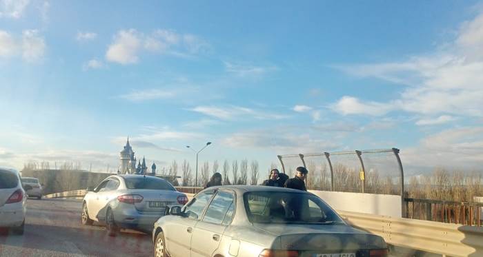 Eskişehir’in Sazova Mahallesi’nde iki otomobilin karıştığı trafik kazası meydana geldi. Köprü üzerindeki yolda gerçekleşen çarpışmanın ardından araçların arka arkaya durduğu görüldü. Kaza sonrası sürücülerin araçlarından inerek yol kenarında beklediği, trafik akışının ise kontrollü şekilde sağlandığı gözlendi.