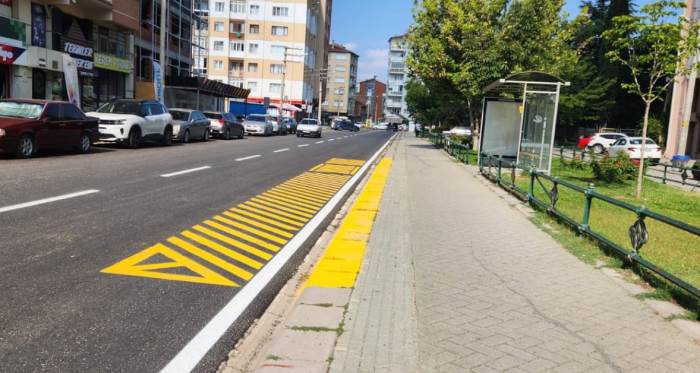 Eskişehir Büyükşehir Belediyesi Trafik Şube Müdürlüğü ekipleri tarafından yol çizgi çalışmaları ve yaya geçidi, durak çizgisi boyama çalışmaları devam ediyor. Önceki gün sıcak asfalt dökülen Gökmeydan Mahallesi Ulus Caddesi üzerinde yapılan çalışmalara ek olarak trafik güvenliğinin de sağlanması amacıyla çalışmalar devam ediyor.