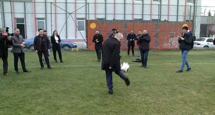 Vali Çakacak futbolculara tatlı ikram edip, sohbet etmesinin ardından Başkan Mustafa Akgören'in ricası ile futbol topunu alarak tekniğini konuşturdu.