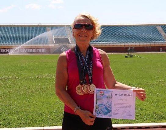 Eskişehir Teknik Üniversitesi'nden memur emeklisi olan master atlet Ayşe Babür, 68 yaşında hem yurt içi hem de yurt dışındaki yarışmalarda elde ettiği başarılarla dikkat çekiyor. 58 yıllık spor hayatında farklı kategoride çok sayıda derece elde eden Babür, son olarak geçtiğimiz günlerde Denizli'de düzenlenen Türkiye Şampiyonası'nda kendi yaş kategorisinde çekiç, ağırlık atma ve 3 adım atlamada 1. oldu.