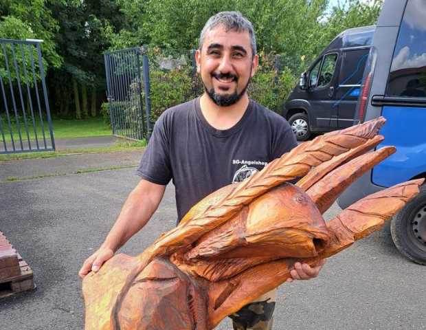 Almanya'da yaşayan ve en büyük hobisi balık tutmak olan Eskişehirli Serdar Gülpunar'a Alman arkadaşı tarafından anlamlı bir figür hediye edildi. Kütüğü işleyerek, dev bir balık formu veren Alman arkadaş, Gülpunar'a bu figürü hediye etti. En büyük hobisi olan balığın figürünün adeta ilmek ilmek ağaca işlenip kendine verilmesinden dolayı oldukça mutlu olan Gülpunar, bu armağanı evinde saklayacağını ifade etti. Konuyla ilgili konuşan Eskişehirli Serdar Gülpunar, "Ahşap balık figürünü Alman bir arkadaşım bana ağaçtan işleyip hediye etti. Sosyal medyada çok güzel yorumlar aldım. Almanya'da kulüpten arkadaşım sağ olsun bana bunu layık görmüş ve hediye etti. Gerçekten çok memnun oldum evinin bir köşesinde yerini alacak. Bunu bu ağacı oyarak, bu şekle getirmesi gerçekten güzel” dedi.