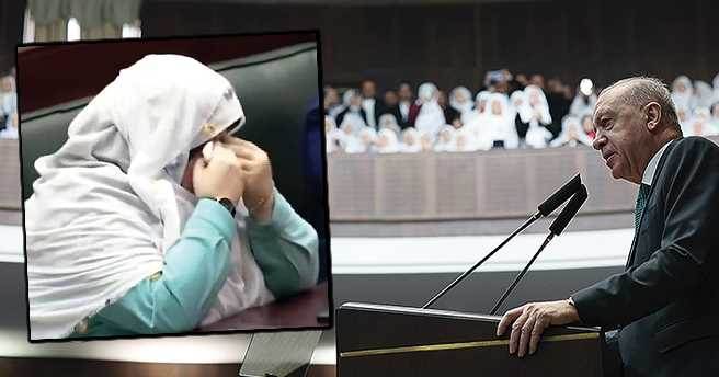 "Bilhassa bir asır önce İstiklal Harbi'mizde olduğu gibi beyaz örtmelerini takıp, şalvarlarını giyerek Eskişehir Mihalgazi'den Grup salonumuza teşrif eden Belediye Başkanımız Zeynep Güneş'le birlikte tüm hanım kardeşlerime teşekkür ediyor, Anadolu kadınının bin yıllık asaletini yansıtan şu vakur duruşları için kendilerine şükranlarımı sunuyorum. Milletten aldığı yetkiyle ilçesine 3 dönemdir hizmet eden başarılı bir kadın siyasetçiyi, 'Şalvarlı kadının görevi ilçe yönetmek değildir. Ahırda inek sağmaktır' diyerek tahkir etmeye kalkan 28 Şubat artığı bu faşizan, bu ukala, kibirli, alçak zihniyeti bugün bir kez daha lanetliyorum. Yıllarca sırf başörtülerinden ötürü kadınların eğitim hakkını, kamuda çalışma hakkını, hatta seçilme hakkını gasbedenlerle, Anadolu kadınının asırlardır üzerinde gururla taşıdığı yazmasına, tülbentine, şalvarına, çarşafına, ihramına, fistanına dil uzatanlarla, millete tepeden bakan, milleti hor ve hakir görenlerle mücadelelerini her zeminde sonuna kadar devam ettireceklerinin bilinmesini isteyen Erdoğan, "Bu ülkede yasakçı ve baskıcı anlayışa göz yummadık ve yummayacağız. Kadınlara parmak sallayanlara meydanı terk etmedik, etmeyeceğiz. Eski karanlık günleri hortlatmaya çalışanların karşısında dimdik durduk, duracağız. Şerife Bacı'nın, Kara Fatma'nın, Nene Hatun'un yolundan giden tüm hanım kardeşlerimi bugün bir kere daha kemal-i hürmetle selamlıyorum. Rabb'im salonlara sığmayan şu muhabbetimizi daim eylesin." dedi.