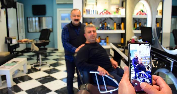 "Müşterilerimle hatıra kalsın istedim. Bu düşünceyle spontane gelişen bir şey oldu. Tıraş bittikten sonra müşterilerimle fotoğraf çektiriyorum. Eskiden fotoğrafların baskını alıyordum. Artık telefonla çekerek sosyal medyadan yayınlıyorum. Böylece bu hatıralar bende kalmış oluyor. Önceden fotoğraf albümü dükkanda masanın üzerinde duruyordu, herkes bakıyordu. Albümde kendini göremeyenler, 'Ya biz burada yokuz, bizi neden çekmedin?' demeye başladılar. Ben de albümü kaldırıp arkaya koydum ve fotoğrafları sosyal medyada paylaşmaya başladım."