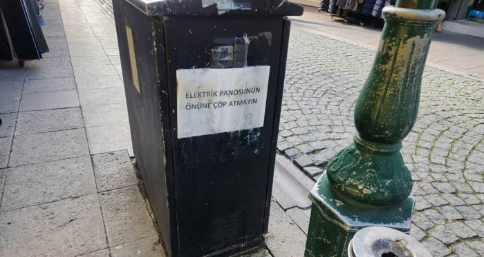Panoya asılan yazıda, “Çöplerinizi buraya atmayın” ifadeleri yer aldı. Esnaf, çevrede sık sık aynı sorunun yaşandığını ve yapılan uyarılara rağmen çöplerin dükkân önüne bırakılmaya devam ettiğini belirtti.