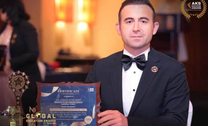 Eskişehir’de Ticaret Borsası İlkokulu’nda öğretmenlik yapan Osman Sıtkı Mert, Dubai’de düzenlenen ödül töreninde ‘2023 Yılının En Başarılı Özel Eğitim Öğretmeni’ seçildi.
