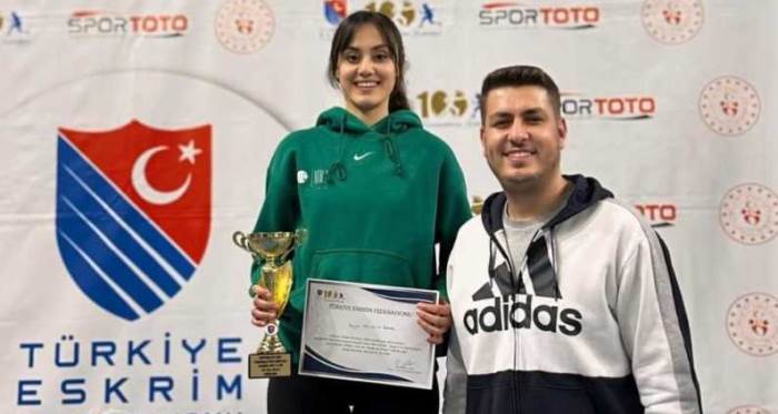 Ankara’da Türkiye Eskrim Federasyonu tarafından düzenlenen Büyükler Epe Müsabakası’nda Eskişehirli Beyza Halvacıay Bacak dereceye girerek üçüncü oldu. Sporcu, mutluluğunu antrenörünü ve arkadaşlarıyla kutlarken, mutluluğu yüzünden adeta okundu.