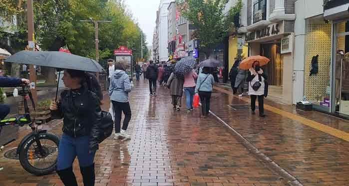 İki Eylül Caddesi ve Hamamyolu Caddesi gibi şehrin merkezi noktalarında şemsiye kullanımının artığı dikkat çekerken, bazı vatandaşların dükkânların altına sığındığı görüldü.