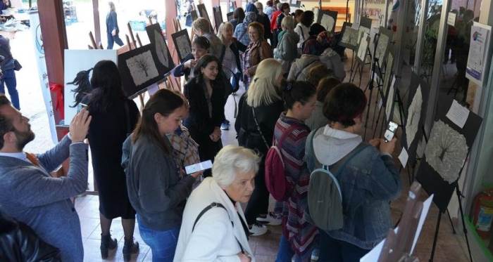 Söyleşinin tamamlanmasının ardından Eskişehir Toplum ve Sanat Derneği tarafından hazırlanan ‘Renklerimi Çaldılar’ isimli ebru sergisi gerçekleştirildi. Ebru Sanatçısı Ruken Turhan tarafından hazırlanan sergide yer alan 28 eserin her biri 2022 Temmuz ayında katledilen kadınlara adandı.