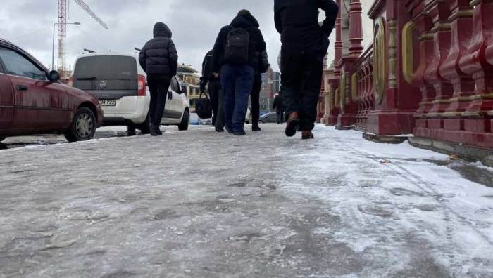 Bere, atkı, eldiven ve botlarla dışarı çıkan vatandaşlar, buzlanan kaldırımlarda yürürken zaman zaman dengelerini kaybetme riski yaşadı. Bazı yayalar ise adımlarını daha dikkatli atarak olası kazaların önüne geçmeye çalıştı.