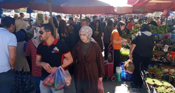 Eskişehir'de Ramazan Bayramı'nda şehir dışına çıkmayarak evinde misafir ağırlamak üzere hazırlık yapan vatandaşlar semt pazarlarında yoğunluk oluşturdu.