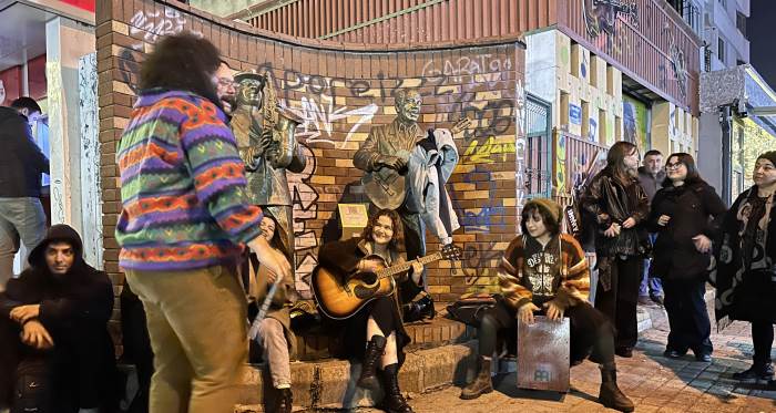 Müzisyen Gökçe Güneyoğlu, kent merkezinde şarkı söylemek için Adalar bölgesine geldiklerini söyledi. Burada başka müzisyenlerle karşılaştıklarını ve plansız bir şekilde birleşerek çeşitli şarkılar söylediklerini ifade eden Güneyoğlu, “Hep birlikte eğlenelim istedik. Yılbaşında sokakta müzik yapmayı planlıyorduk. Eskişehir halkı iyi bilir, burada genelde müzisyenler sokak müziği yapıyorlar ve milletle birlikte eğleniyorlar. Burada başka arkadaşlarımız da bugün müzik yapıyormuş, onlara eşlik etmek için yanında durduk. Hep birlikte eğleniyoruz. Sağ olsunlar Eskişehir halkı da eşlik ediyorlar. Yılbaşında keyifli bir vakit geçiriyoruz, yani sokakta müzik yapanların çoğu birbirini tanır, selamlaşıp yanlarına oturabiliyorsunuz. Tanımasanız bile yani kimsenin yadırgayacağı bir durum değil, oturup eşlik edebilir, şarkı söyleyebilirsiniz. Bir müzik aleti çalmanıza gerek yok. Sesinizin güzel olmasına gerek yok, keyif almanız yeterli” dedi.
