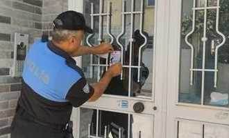 Eskişehir’de polis ekipleri, evden hırsızlık ve dolandırıcılık konularıyla ilgili bina giriş kapılarına uyarıcı etiketler yapıştırdı