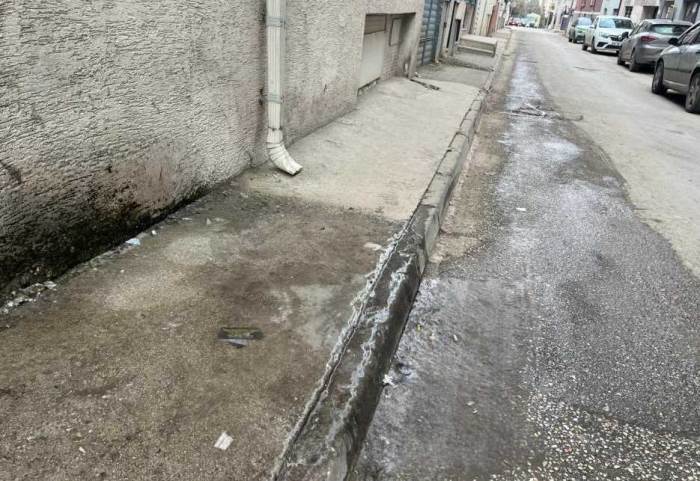 Odunpazarı ilçesine bağlı Emek Mahallesi Ozan Sokak üzerinde, bir binanın dış cephesine monte edilen klimanın tahliye borusundan sızan sular, dondurucu soğukların etkisiyle kaldırım üzerinde adeta bir buz pisti oluşturdu. Yoldan geçen vatandaşların yürümekte güçlük çektiği ve her an düşme riskiyle karşı karşıya kaldığı sokakta, aynı zamanda klima ünitesinin hemen altında biriken dev buz kütleleri de yukarıdan gelebilecek bir tehlikeye davetiye çıkarıyor.