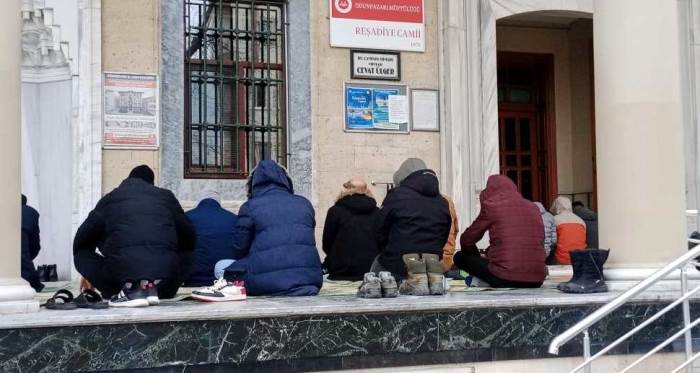 Montlarını ve berelerini giyerek soğuğa karşı tedbir alan vatandaşlar hutbenin ardından soğuk havaya rağmen namazını kıldı. Elinde seccadesiyle birlikte namaza gelen bir öğrenci ise görenlerin takdirini topladı.