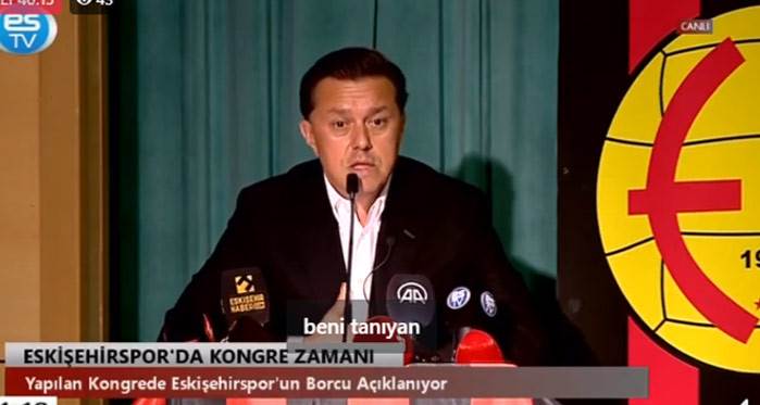 Eskişehirspor Mali Kongresi gerçekleşiyor. İYİ Parti Eskişehir Milletvekili Nebi Hatipoğlu, kürsüde konuşuyor.