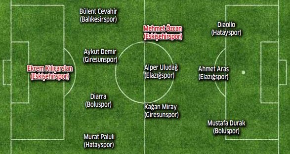 Eskişehirspor’da kaleci Ekrem Kılıçarslan ve orta saha oyuncusu Mehmet Özcan, Gaziantep Gazişehir maçındaki performanslaıyla TRT Spor tarafından haftanın en iyi 11’ine seçildi. TRT Spor’un her hafta Spor Toto 1. Lig takımlarını değerlendirdiği ‘Hedef Süper Lig’ programına bu hafta Eskişehirspor damga vurdu. Ligi güçlü ekiplerinden Gazişehir FK karşısında müthiş bir mücadele örneği sergileyen Siyah-Kırmızılı ekipten kaleci Ekrem Kılıçarslan ve orta saha oyuncusu Mehmet Özcan haftanın en iyi ilk  11’ine seçildi. Siyah-Kırmızılı takım genel olarak da övgü aldı. Önceki haftalarda İbrahim Halil Öner de bu 11’e seçilmişti.