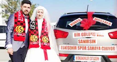 Eskişehirspor sevdalısı olan ve Sütlüce Nefer grubundan Mustafa Özkan Ay ile Kübra Selli dünya evine girdi. Genç çift, gelin arabasının arkasına “Bir gülüşü var sanırsın Eskişehirspor sahaya çıkıyor” yazdırarak arma ve Siyah Kırmızılı renklere olan sevgilerini en mutlu günlerinde de pekiştirmiş oldular. Gelin ve damat düğün salonuna da