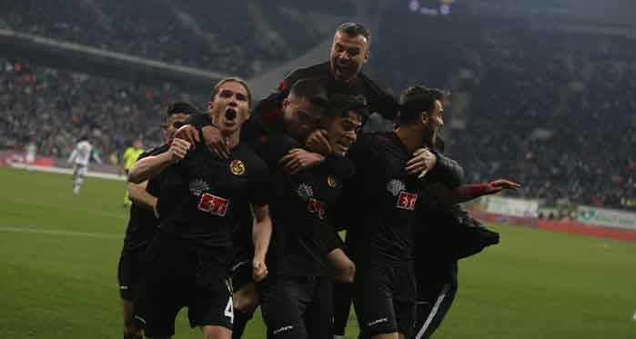 Ezeli rakibi Bursaspor’u tek golle mağlup eden Eskişehirspor, müthiş bir galibiyete imza attı. Kırmızı Şimşekler, Metehan’ın golüyle sahadan 3 puanla ayrılarak küme düşme hattında yer alan rakipleriyle puan farkının açılmasına izin vermedi. Dün Bursa’da tarih yazan Siyah Kırmızılı futbolcular maç sonu büyük sevinç yaşadı.