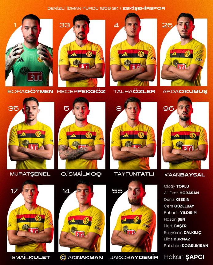 Eskişehirspor, Bölgesel mücadelede Denizli İdman Yurdu 1959 SK karşısına çıkacağı maç için sahaya süreceği kadroyu açıkladı. Teknik direktör Hakan Şapçı’nın belirlediği ilk 11, taraftarlar arasında heyecan yarattı.