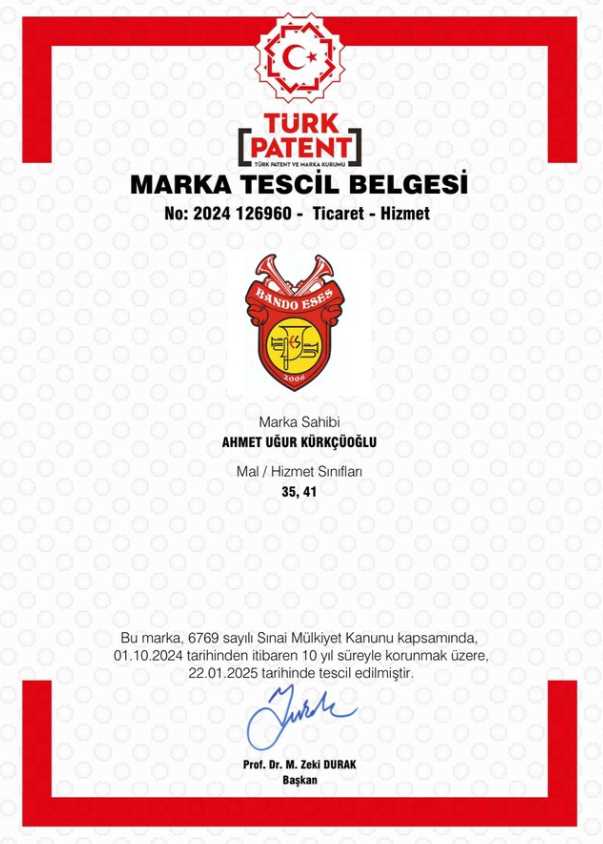 Eskişehirspor taraftarlarının yüreklerinde taht kurmuş ve Türk futbol tarihine damga vurmuş olan Bando Es Es, yeni bir ilke imza attı. Efsanevi bandonun ismi, Mega Patent vekilliği tarafından marka tescili yapıldı. Bu önemli adım, hem Bando Es Es’in gelecekteki faaliyetleri için güçlü bir temel oluşturacak hem de Eskişehirspor’un tanıtımına büyük katkı sağlayacak.