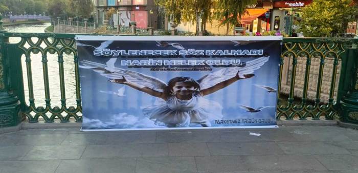 Eskişehirspor Farketmez Tribün Grubu, 8 yaşındaki Minik Narin'in acı kaybına tepki olarak Adaların girişine asılan pankartıyla dikkat çekti