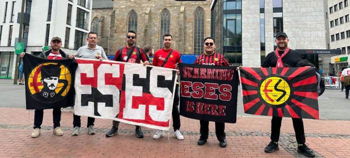 Eskişehirspor taraftarları, EURO 2024'te Almanya'da Es Es armasını sokaklarda gezdiriyor ve Eskişehirspor'un ismini stadyumlara taşıyor.