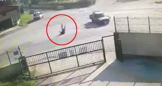Düzce’de motosiklet ile kamyonetin çarpıştığı kazada motosiklet sürücüsü taklalar attı. Kazada sürücü ağır yaralandı. Kaza Düzce Organize Sanayi Bölgesi’nde meydana geldi. Edinilen bilgilere göre, OSB 1. Bulvarı kavşağında seyir halinde olan kamyonete hızla gelen seyir halinde olan motosiklet çarptı. Çarpışmanın şiddeti ile motosiklet sürücüsü havada taklalar atarak yola savruldu. Kazada ağır yaralanan sürücü hastaneye kaldırılırken, o anlar çevrede ki fabrikanın güvenlik kamerasınca kayıt altına alındı.